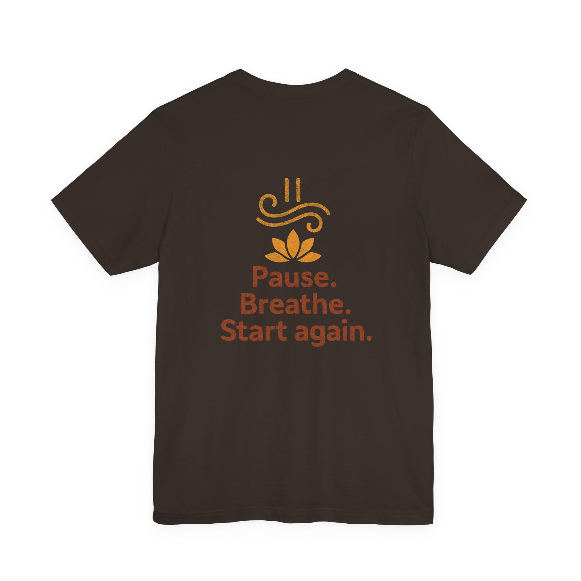 Soft, simple, and grounding — the Pause. Breathe. Start Again Tee is a quiet reminder that there’s power in slowing down. Lightweight Airlume cotton feels gentle against the skin, while a minimalist chest emblem and larger back design carry the message to reset with grace and presence.